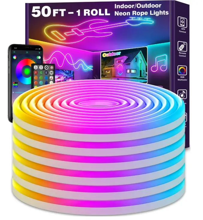 50Ft Neon Rope Lights,Flexible Led Rope Lights Control with App/Remote,Multiple Modes Rope Lights,IP65 Outdoor RGB Led Neon Lights Waterproof,Music Sync Gaming Led Neon Light Strip for Bedroom Decor