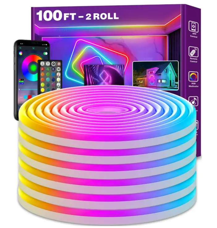100Ft Neon Rope Lights,Flexible Led Rope Lights Control with App/Remote,Multiple Modes Rope Lights,IP65 Outdoor RGB Led Neon Lights Waterproof,Music Sync Gaming Led Neon Light Strip for Bedroom Decor