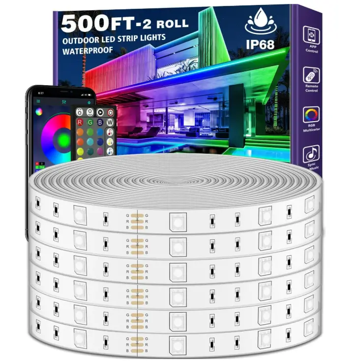LETIANPAI 500ft Outdoor LED Strip Lights Waterproof,IP68 Outside Led Light Strips Waterproof with App and Remote,Music Sync RGB Exterior Led Rope Lights with Self Adhesive Back for Roof, Deck, Balcony