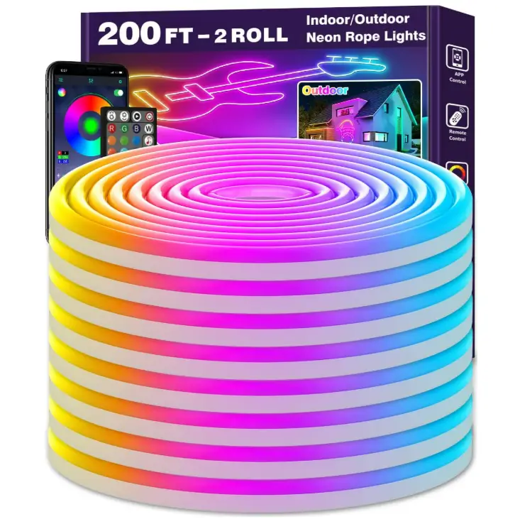 200Ft Neon Rope Lights,Flexible Led Rope Lights Control with App/Remote,Multiple Modes Rope Lights,IP65 Outdoor RGB Led Neon Lights Waterproof,Music Sync Gaming Led Neon Light Strip for Bedroom Decor